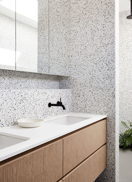 Les matériaux les plus fréquemment utilisés pour ce style de décoration comprennent le béton, le verre, les métaux, le bois ainsi que les matières artificielles dont le vinyle, le PVC et l’acrylique. Pour le plancher, on opte pour des couleurs unies ainsi que des matériaux plus sobres comme béton ou le bois et on évite tous les carrelages et autres motifs complexes.